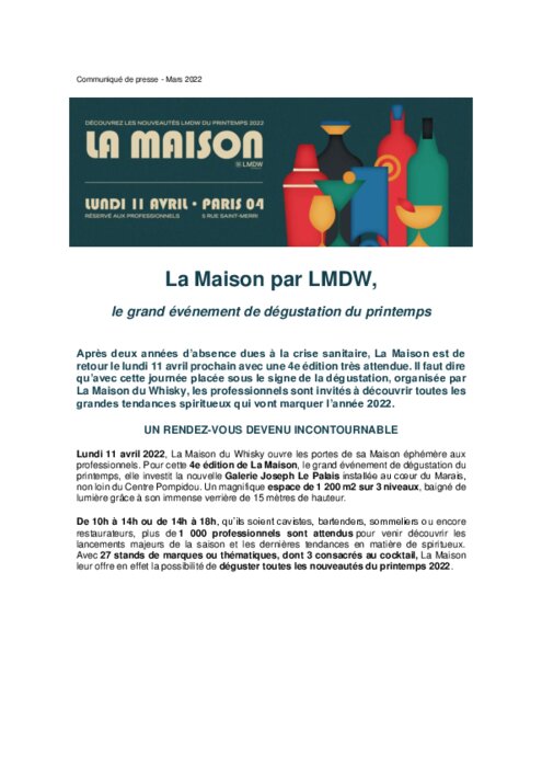 Métiers 17 mars 2022 - 10:46 Après deux années d’absence dues à la crise sanitaire, La Maison est de retour le lundi 11 avril prochain avec une 4e édition très attendue. PDF (364 Ko) Télécharger