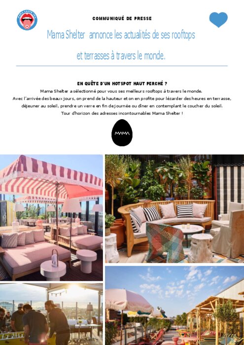 Mama Shelter a sélectionné ses meilleurs rooftops à travers le monde. Avec l’arrivée des beaux jours, on prend de la hauteur et on en profite pour lézarder des heures en terrasse, déjeuner au soleil, prendre un verre en fin de journée ou dîner en contemplant le coucher du soleil. Tour d'horizon des adresses incontournables Mama Shelter .