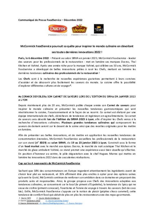 Fournisseurs 15 décembre 2022 - 15:03 L'année 2022, marquée par les 50 ans de la marque Vahiné, se termine en beauté pour McCormick FoodService qui dévoile ses nouveaux produits, inspirés des dernières tendances culinaires. PDF (401 Ko) Télécharger