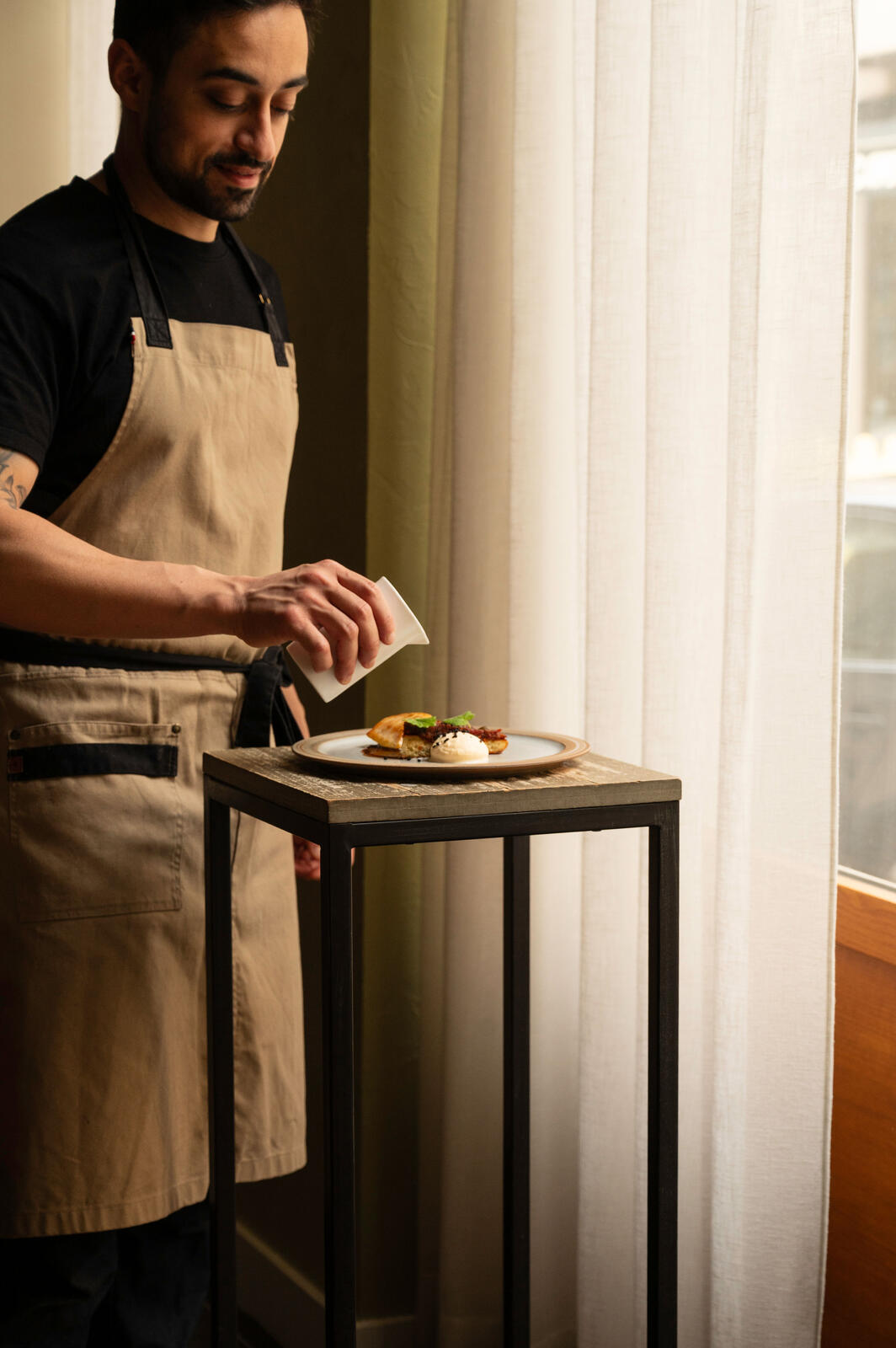 Après Le Clos Fleuri (ancien établissement de Pierre Gagnaire), tenu alors par Franck Deville, le Bougainvillier de Gérard Charbonnier, et La Ferme de Cupelin, auprès de Romain Desgranges, il devient second du réputé restaurant lyonnais Culina Hortus (élu meilleur végétarien du monde en 2020). C’est avec cette expérience déterminante et des voyages, notamment un long séjour au Japon, ou encore en étant finaliste d’un concours organisé par Olivier Ginon (GL events) qu’il décide de reprendre un ancien restaurant étoilé au coeur du chic et néanmoins dynamique 6ème arrondissement de Lyon.
