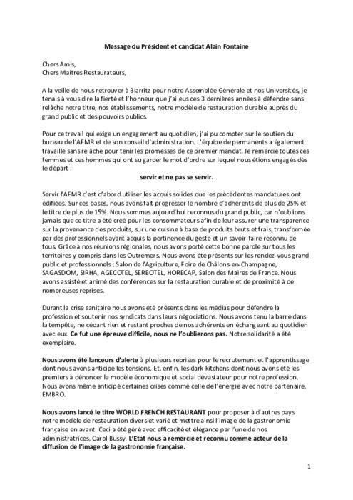 Message du Président et candidat Alain Fontaine à l'AFMR