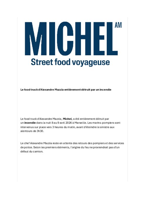 "Michel", le food truck du chef Alexandre Mazzia, détruit par un incendie