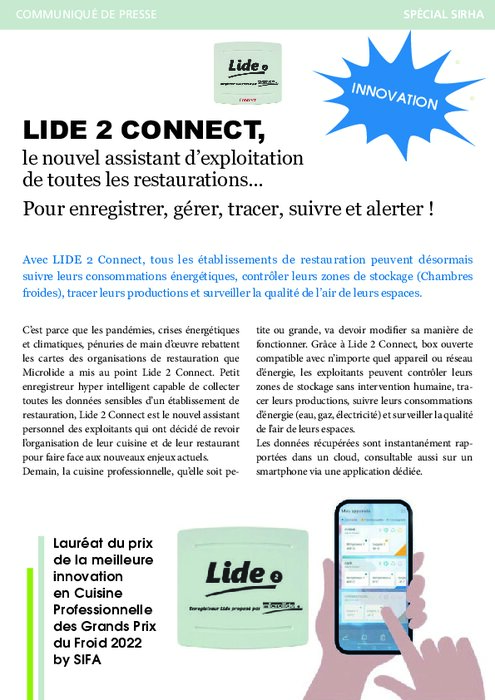 Avec LIDE 2 Connect, tous les établissements de restauration peuvent désormais suivre leurs consommations énergétiques, contrôler leurs zones de stockage (Chambres froides), tracer leurs productions et surveiller la qualité de l’air de leurs espaces.