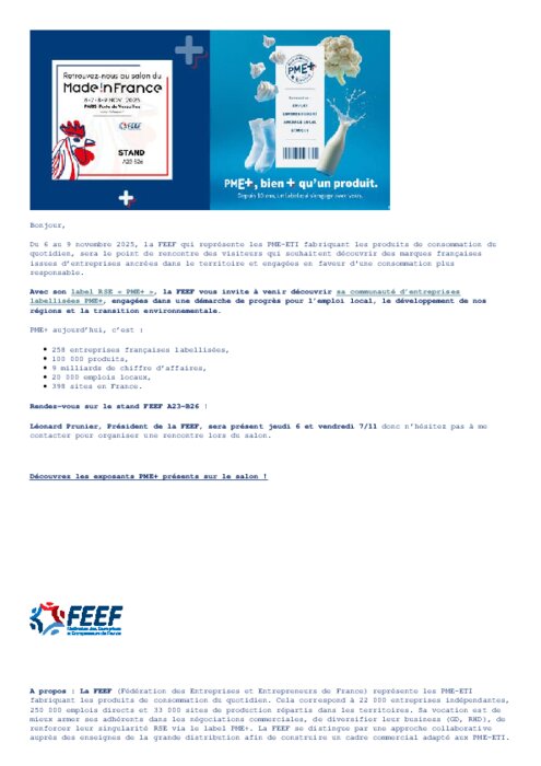 Du 6 au 9 novembre, la FEEF qui représente les PME-ETI fabriquant les produits de consommation du quotidien, sera le point de rencontre des visiteurs qui souhaitent découvrir des marques françaises issues d’entreprises ancrées dans le territoire et engagées en faveur d'une consommation plus responsable.