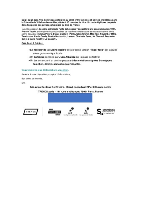 Du 24 au 26 juin, Villa Schweppes retourne au soleil entre farniente et soirées endiablées dans la Citadelle de Villefranche-sur-Mer, située à 15 minutes de Nice.