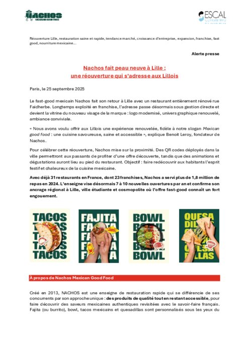 Le fast-good mexicain Nachos fait son retour à Lille avec un restaurant entièrement rénové rue Faidherbe. Longtemps exploité en franchise, l’adresse passe désormais sous gestion directe et devient la vitrine du nouveau visage de la marque : logo modernisé, univers graphique renouvelé, ambiance conviviale.