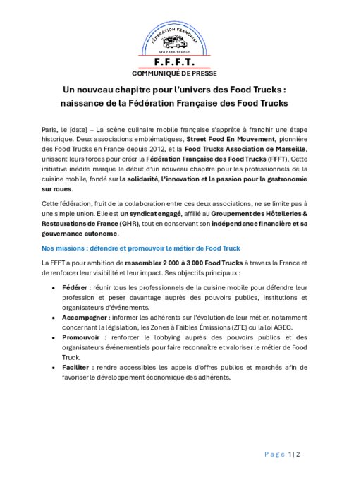 La scène culinaire mobile française s’apprête à franchir une étape historique. Deux associations emblématiques, Street Food En Mouvement, pionnière des Food Trucks en France depuis 2012, et la Food Trucks Association de Marseille, unissent leurs forces pour créer la Fédération Française des Food Trucks (FFFT). Cette initiative inédite marque le début d’un nouveau chapitre pour les professionnels de la cuisine mobile, fondé sur la solidarité, l’innovation et la passion pour la gastronomie sur roues.