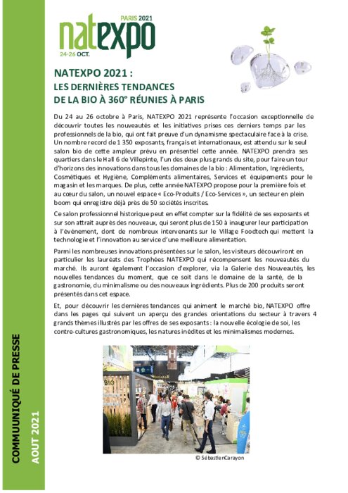 Du 24 au 26 octobre à Paris, NATEXPO 2021 représente l'occasion exceptionnelle de découvrir toutes les nouveautés et les initiatives prises ces derniers temps par les professionnels de la bio, qui ont fait preuve d'un dynamisme spectaculaire face à la crise.