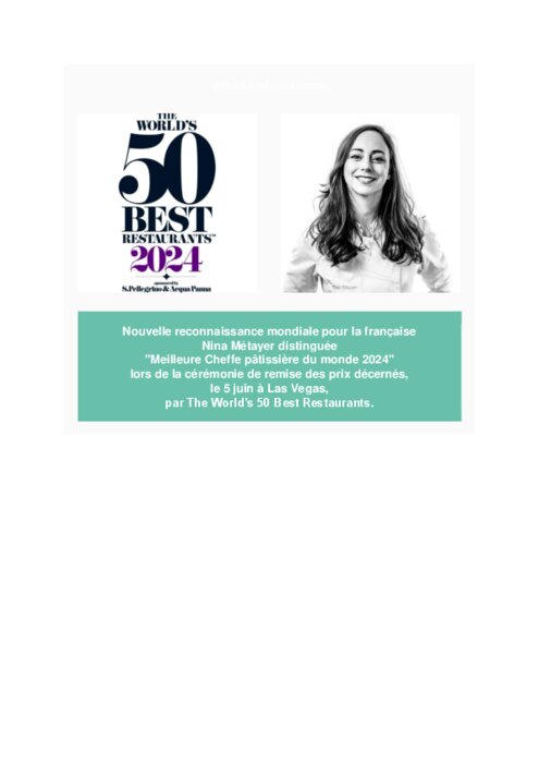 « C’est un honneur, quelques mois après ma nomination au titre de Pâtissière Mondiale 2023 par l’Uibc, d’être reconnue à l’international par le jury exigeant de l’Académie des 50 Best qui réunit plus d’un millier de professionnels, gourmets éclairés et experts indépendants de l'industrie de la restauration.