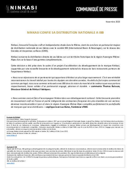 Restauration commerciale 15 novembre 2023 - 09:51 Ninkasi conserve la distribution directe de ses bières sur son territoire historique de la région Auvergne Rhône-Alpes-Est sur la base d’une gamme complémentaire. PDF (193 Ko) Télécharger