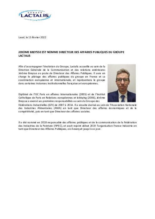 Nomination J. Breysse Directeur Affaires Publiques Groupe Lactalis