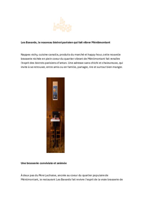 Nappes vichy, cuisine canaille, produits du marché et happy hour, cette nouvelle brasserie nichée en plein coeur du quartier vibrant de Ménilmontant fait renaître l’esprit des bistrots parisiens d’antan. Une adresse sans chichi et chaleureuse, qui invite à se retrouver, entre amis ou en famille, partager, rire et surtout bien manger.