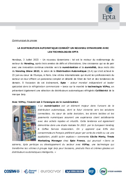 Nouveau dynamisme : pour le secteur du Vending (EPTA)