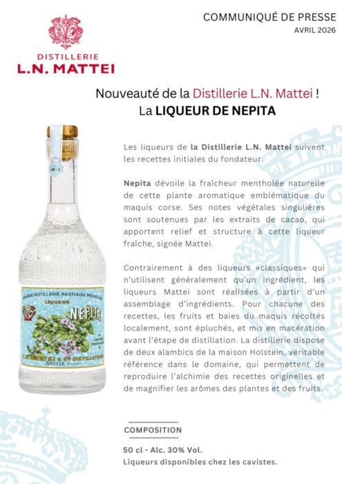 Nouveauté de la Distillerie L.N. Mattei : La liqueur de Nepita