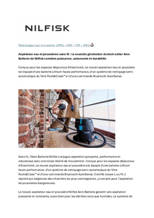 Aspirateur eau et poussières sans fil : la nouvelle génération du best-seller Aero Batterie de Nilfisk combine puissance, autonomie et durabilité. Conçus pour les espaces dépourvus d’électricité, ce nouvel aspirateur eau et poussière est équipé d’une batterie Lithium haute performance, d’un système de nettoyage semi-automatique du filtre Push&Clean et d’une commande Bluetooth AutoSense.