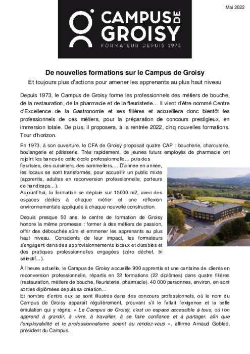 Depuis 1973, le Campus de Groisy forme les professionnels des métiers de bouche, de la restauration, de la pharmacie et de la fleuristerie.