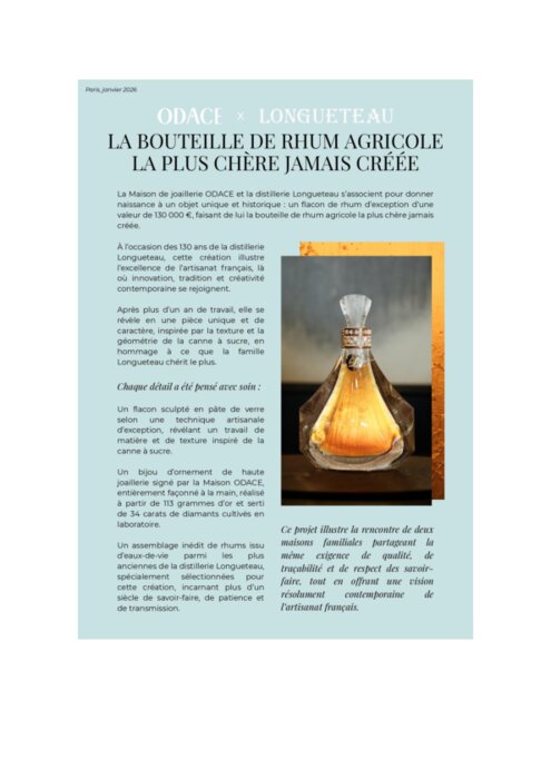 Odace x Longueteau dévoilent la bouteille de rhum la plus chère jamais créée