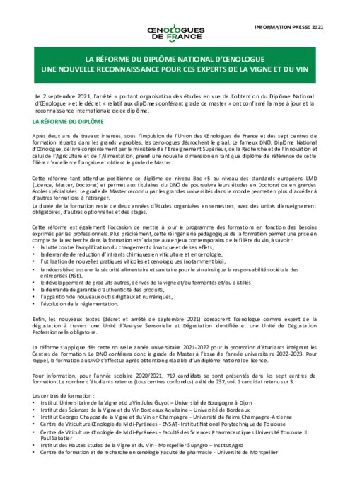 Après deux ans de travaux intenses, sous l’impulsion de l’Union des Œnologues de France et des sept centres de formation répartis dans les grands vignobles, les œnologues décrochent le graal.