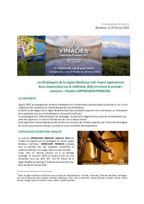 Métiers 28 février 2022 - 14:51 Le concours bénéficie de l’expertise d’œnologues, spécialistes du vin et de la dégustation, qui fournissent une évaluation commentée et professionnelle des vins rouges, blancs et rosés destinés à une mise en marché précoce ou à un élevage prolongé. PDF (310 Ko) Télécharger