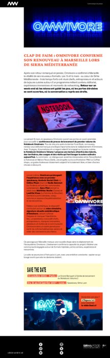 Après son retour remarqué en janvier, Omnivore a confirmé à Marseille la vitalité de ses nouveaux formats. Les 15 et 16 mars - au cœur de Sirha Méditerranée - trois temps forts ont réuni chefs, entrepreneurs et acteurs de la jeune cuisine autour d’un programme mêlant contenu éditorial, expériences immersives et moments de networking.