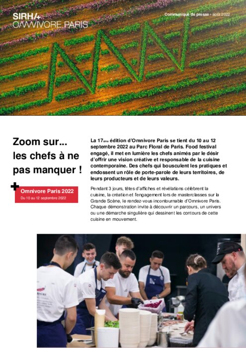 Omnivore Paris, devenu Sirha Omnivore, est de retour pour une 17e édition du 10 au 12 septembre au Parc Floral de Paris. Food festival engagé, il met en lumière les chefs animés par le désir d’offrir une vision créative et responsable de la cuisine contemporaine.