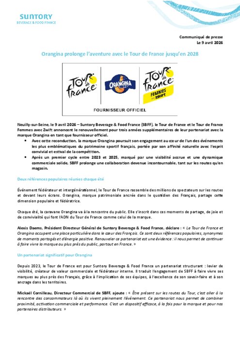 Evénement fédérateur et intergénérationnel, le Tour de France rassemble des millions de spectateurs sur les routes et devant leurs écrans. Orangina, marque patrimoniale ancrée dans le quotidien des Français, partage cette dimension populaire et fédératrice.