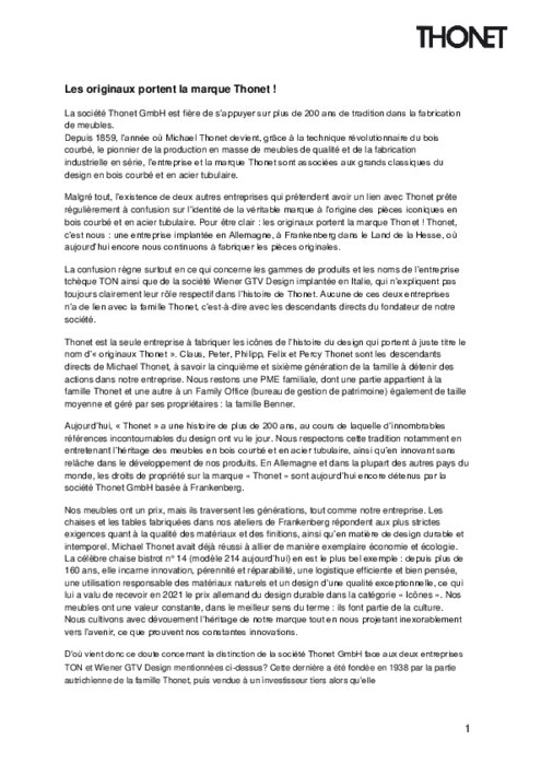 Fournisseurs 09 janvier 2023 - 11:05 La société Thonet GmbH est fière de s’appuyer sur plus de 200 ans de tradition dans la fabrication de meubles. PDF (81 Ko) Télécharger