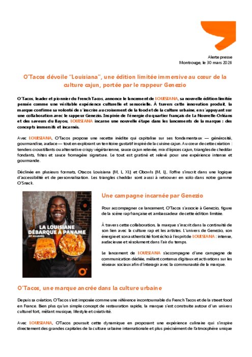 O’Tacos dévoile “Louisiana”
