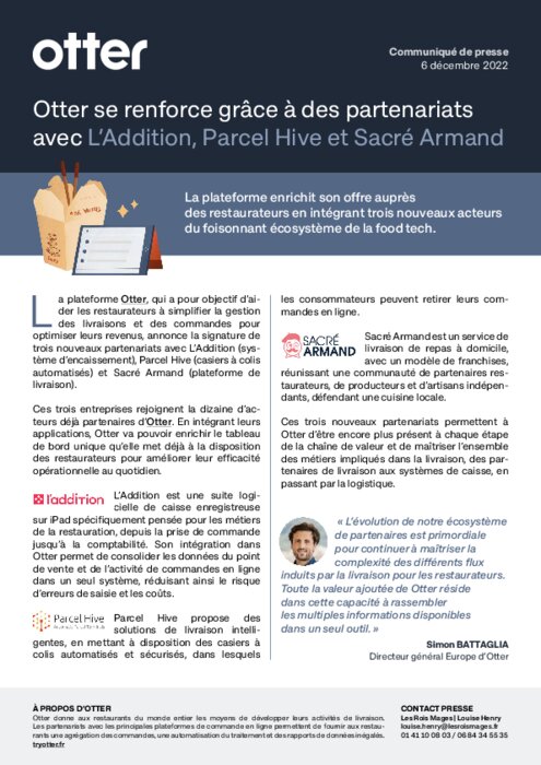 Otter se renforce grâce à des partenariats avec L'Addition, Parcel Hive et Sacré Armand