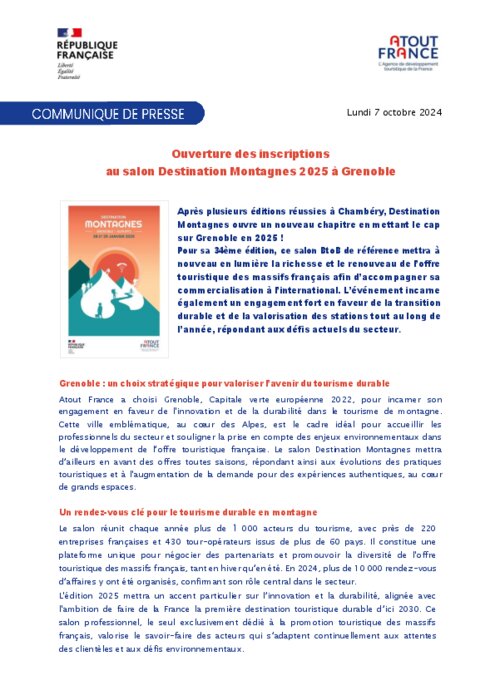 Après plusieurs éditions réussies à Chambéry, Destination Montagnes ouvre un nouveau chapitre en mettant le cap sur Grenoble en 2025 . Pour sa 34e édition, ce salon BtoB de référence mettra à nouveau en lumière la richesse et le renouveau de l’offre touristique des massifs français afin d’accompagner sa commercialisation à l’international. L’événement incarne également un engagement fort en faveur de la transition durable et de la valorisation des stations tout au long de l’année, répondant aux défis actuels du secteur.