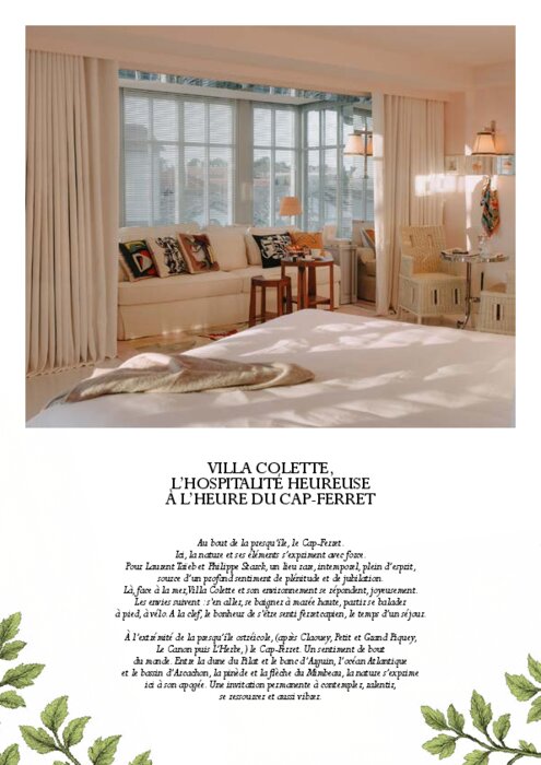 Libre et lumineux, le Cap-Ferret se découvre ici autrement. Villa Colette invite à des expériences simples et précieuses : nager au lever du jour, embarquer en pinasse pour la dune du Pilat, pédaler sous les pins jusqu’à L’Herbe ou savourer des huîtres face à la mer. À chaque instant, la nature donne le la, la douceur s’invite, et l’élégance se devine dans chaque attention. À tout moment, le théâtre d’une hospitalité heureuse.