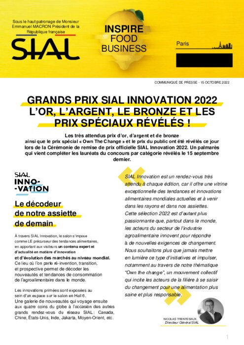 Métiers 15 octobre 2022 - 18:36 Pendant 5 jours, SIAL Paris devient la source d'inspiration international de l'alimentaire. PDF (2 Mo) Télécharger