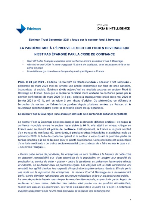 L’édition France 2021 de l’étude mondiale « Edelman Trust Barometer » présentée en mars 2021 met en lumière une année infodémique sur fond de crise sanitaire, économique et sociale.