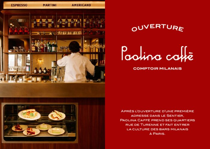 Restauration commerciale 23 avril 2026 - 16:42 Après l’ouverture d’une première adresse dans le Sentier, Paolina Caffè prend ses quartiers rue de Turenne et fait entrer la culture des bars milanais à Paris. PDF (1017 Ko) Télécharger