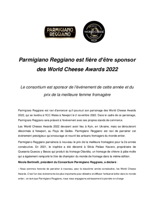 Parmigiano Reggiano est sponsor de l'événement des World Cheese Awards 2022