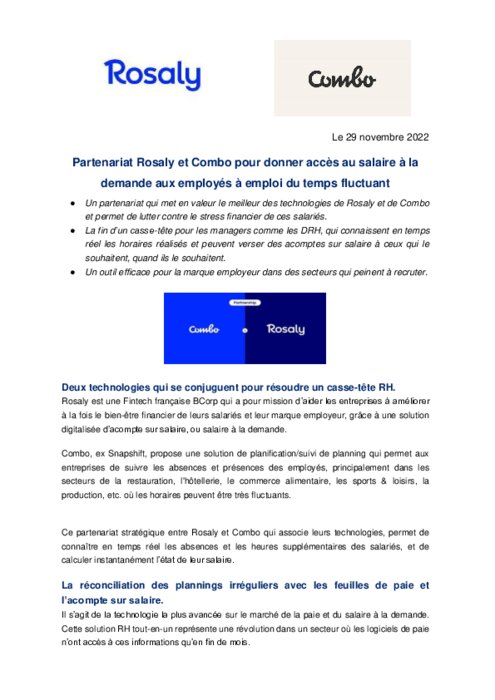 Partenariat Rosaly et Combo pour résoudre un casse-tête en RH dans les métiers de la restauration, hôtellerie