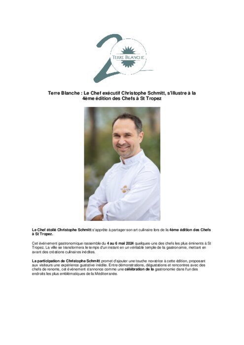 Métiers 26 mars 2024 - 12:54 Cet événement gastronomique rassemble du 4 au 6 mai quelques-uns des chefs les plus éminents à Saint-Tropez. La ville se transformera le temps d'un instant en un véritable temple de la gastronomie, mettant en avant des créations culinaires inédites. PDF (59 Ko) Télécharger