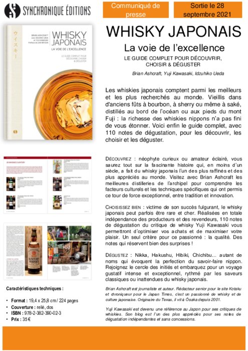 Les whiskies japonais comptent parmi les meilleurs et les plus recherchés au monde. Vieillis dans d'anciens fûts à bourbon, à sherry ou même à saké, distillés au bord de l’océan ou aux pieds du mont Fuji : la richesse des whiskies nippons n’a pas fini de vous étonner. Voici enfin le guide complet, avec 110 notes de dégustation, pour les découvrir, les choisir et les déguster.