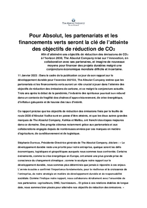 Pernod Ricard : Rapport RSE de The Absolut Company
