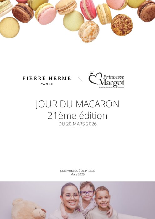 Initié en 2005 par Pierre Hermé, le 20 mars est devenu le Jour du Macaron ! Célébré depuis plus de vingt ans, il marque l’arrivée du printemps avec douceur et gourmandise, tout en soutenant une cause solidaire. Pour sa 21ᵉ édition, la Maison Pierre Hermé Paris renouvelle son engagement aux côtés de l’association Princesse Margot, qui accompagne les enfants atteints de cancer et soutient leurs familles face à l’épreuve de la maladie. À travers plusieurs initiatives solidaires, en boutique, en ligne et dans les rues de Paris, cette nouvelle édition invite chacun à participer à un élan de générosité où la gourmandise devient un geste de solidarité.