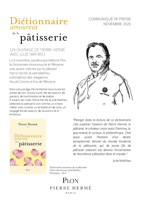 Pierre Hermé signe son Dictionnaire amoureux de la pâtisserie, aux éditions Plon