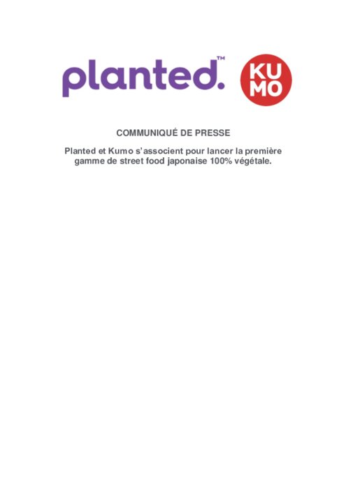 Fournisseurs 26 octobre 2022 - 11:04 Kumo, la marque de street-food japonaise ultra fraîche, et Planted, la marque tendance Suisse de protéines végétales s’associent pour créer la première gamme de street food japonaise 100% végétale et ultra gourmande. PDF (314 Ko) Télécharger
