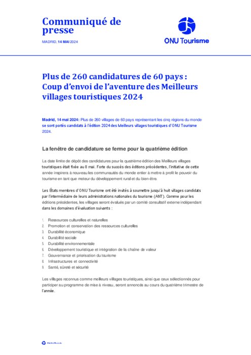 Plus de 260 candidatures de 60 pays : Coup d'envoi de l'aventure des Meilleurs villages touristiques 2024