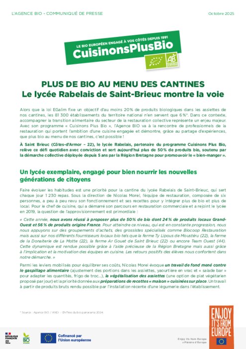Plus de bio au menu des cantines : Le lycée Rabelais de Saint-Brieuc montre la voie