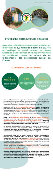 Avec des retombées économiques directes et indirectes de 2,2 milliards d’euros en 2023 et un maillage territorial unique, le réseau spécialisé dans l’accueil chez et par l’habitant se positionne comme un acteur clé et indispensable des écosystèmes ruraux en France.