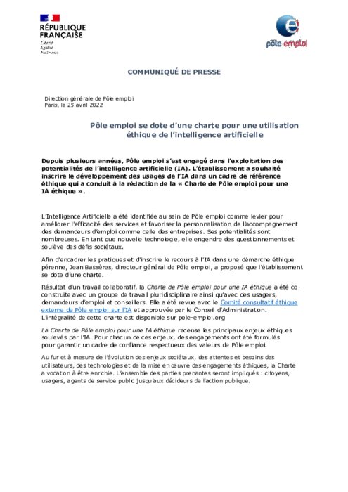 Pôle emploi se dote d’une charte pour une utilisation éthique de l’intelligence artificielle
