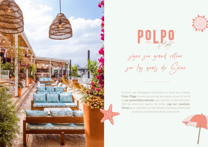 Comme une échappée ensoleillée au bord de la Seine, Polpo Plage rouvre ses portes aux beaux jours et invite à une parenthèse estivale sans quitter l’ouest parisien. Dès les premiers rayons de soleil, cap sur Levallois-Perret pour rejoindre ce lieu devenu incontournable des amateurs de farniente & de convivialité.