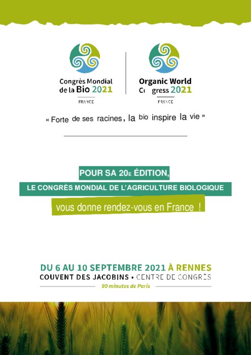 Métiers 23 juillet 2021 - 10:58 Cet événement fédérateur et international pour l'agriculture biologique est accueilli pour la première fois en France sous le parrainage de Nicolas Hulot. PDF (2 Mo) Télécharger