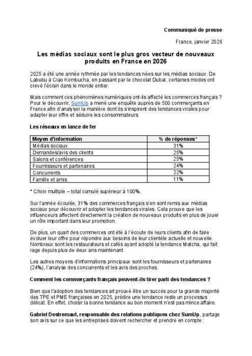 On pense souvent que pour réussir en 2026, un restaurateur doit passer sa vie sur TikTok. La réalité est tout autre. Une nouvelle étude SumUp révèle un paradoxe fascinant : l’hôtellerie-restauration est le secteur qui résiste le mieux à la "dictature de l'image". L'humain avant l'écran : 37 % des professionnels du secteur considèrent les retours directs de leurs clients comme leur source n°1 de tendances, loin devant les réseaux sociaux (29 %). Le contraste : À l'opposé, 46 % des créatifs et marketeurs sont totalement "TikTok-dépendants". Le bastion des artisans : Dans le bâtiment, c'est encore plus radical : on fait confiance à son fournisseur (47 %) plutôt qu'à un influenceur.