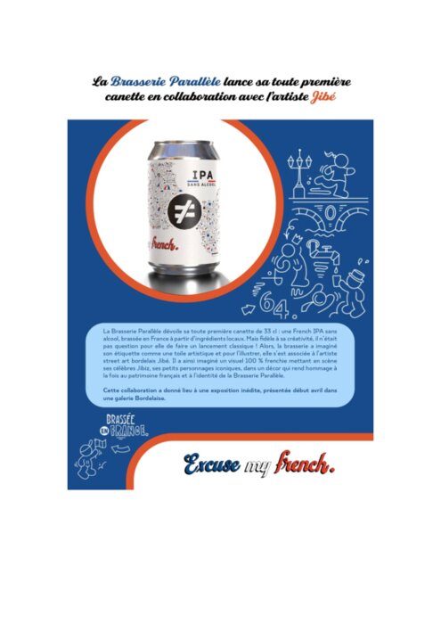 Fournisseurs 16 avril 2026 - 14:37 La Brasserie Parallèle, jeune brasserie sans alcool bio, fun et créative, lance sa toute première canette. A cette occasion, elle s'est associée avec l'artiste street art Jibé. PDF (788 Ko) Télécharger